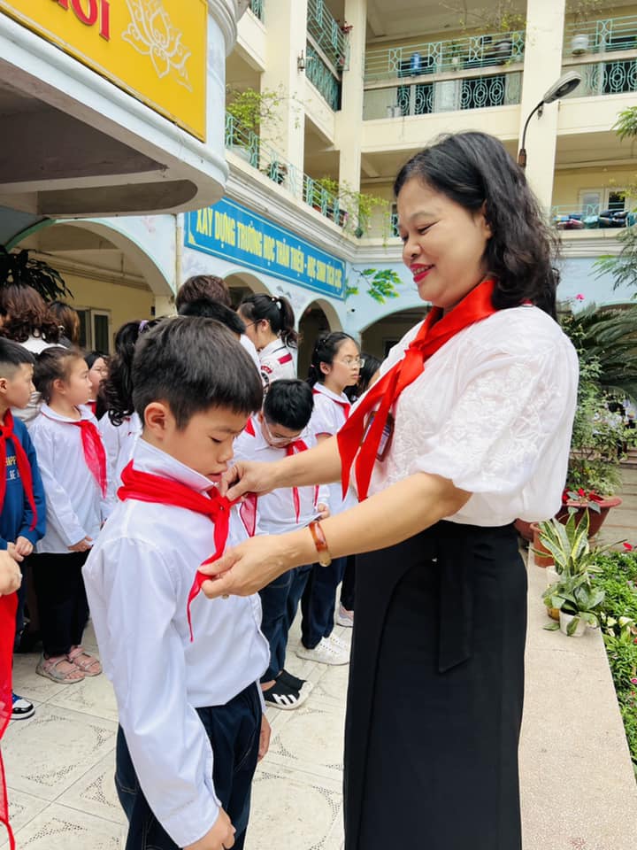 Được đứng trong hàng ngũ Đội Thiếu niên Tiền phong Hồ Chí Minh là vinh dự, niềm tự hào đối với các em. Từ hôm nay, các em đã được mang trên vai chiếc khăn đỏ thắm màu cờ Tổ Quốc. Màu khăn đỏ như nhắc nhở các em phải phấn đấu vươn lên không ngừng để trở thành Đội viên tốt, xứng đáng là con ngoan trò giỏi – cháu ngoan Bác Hồ.